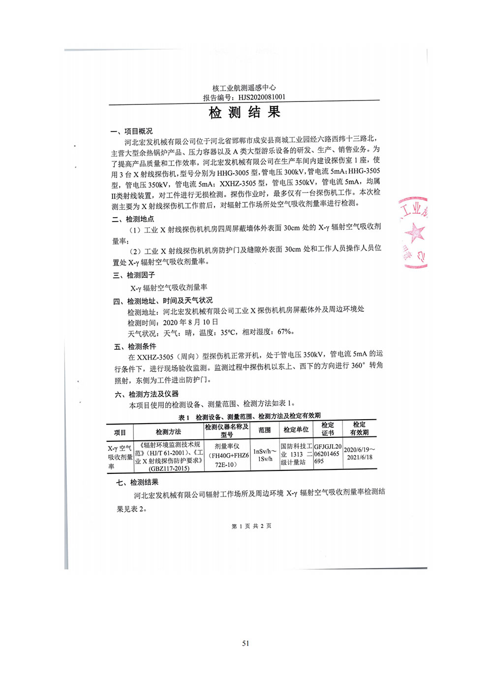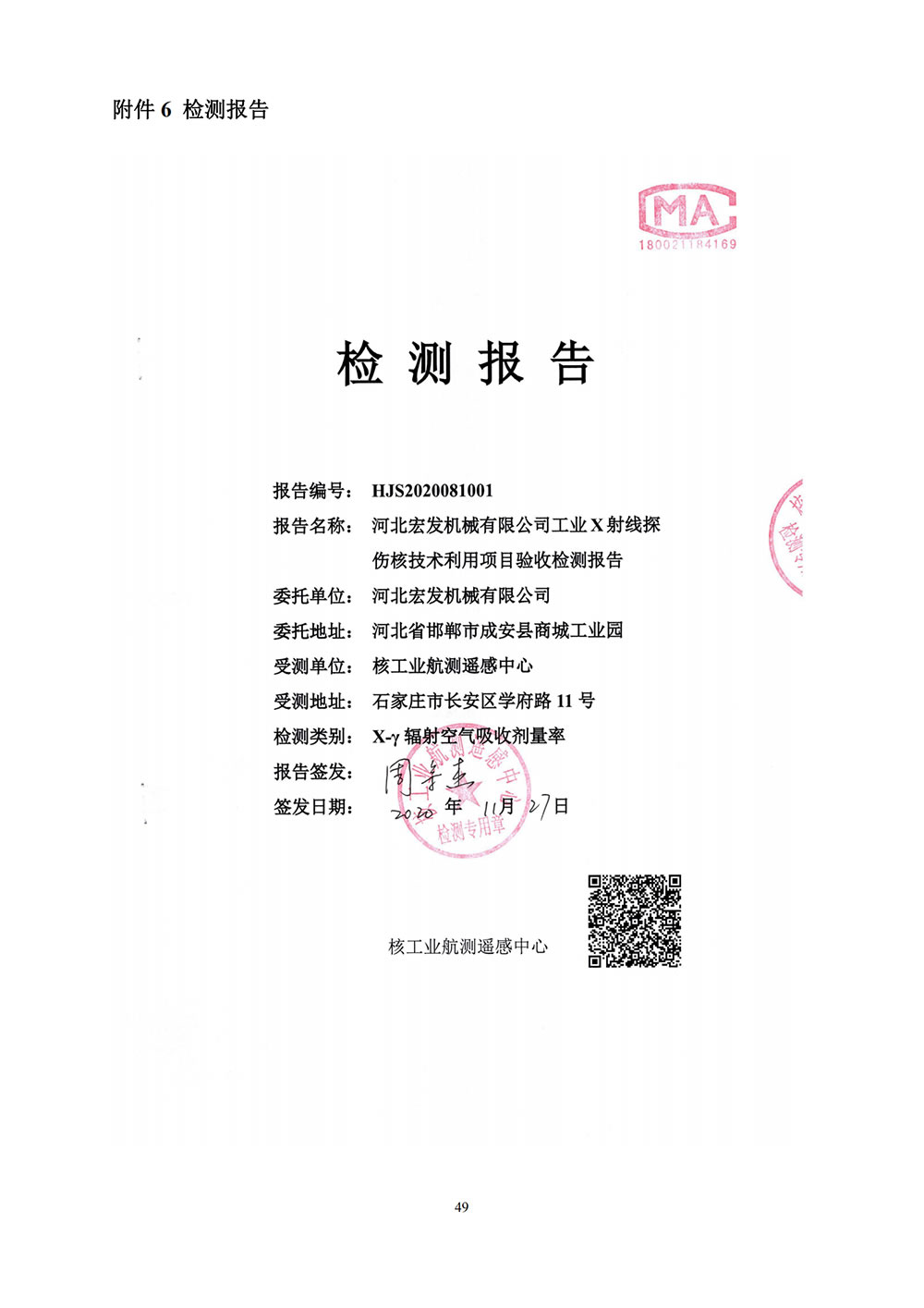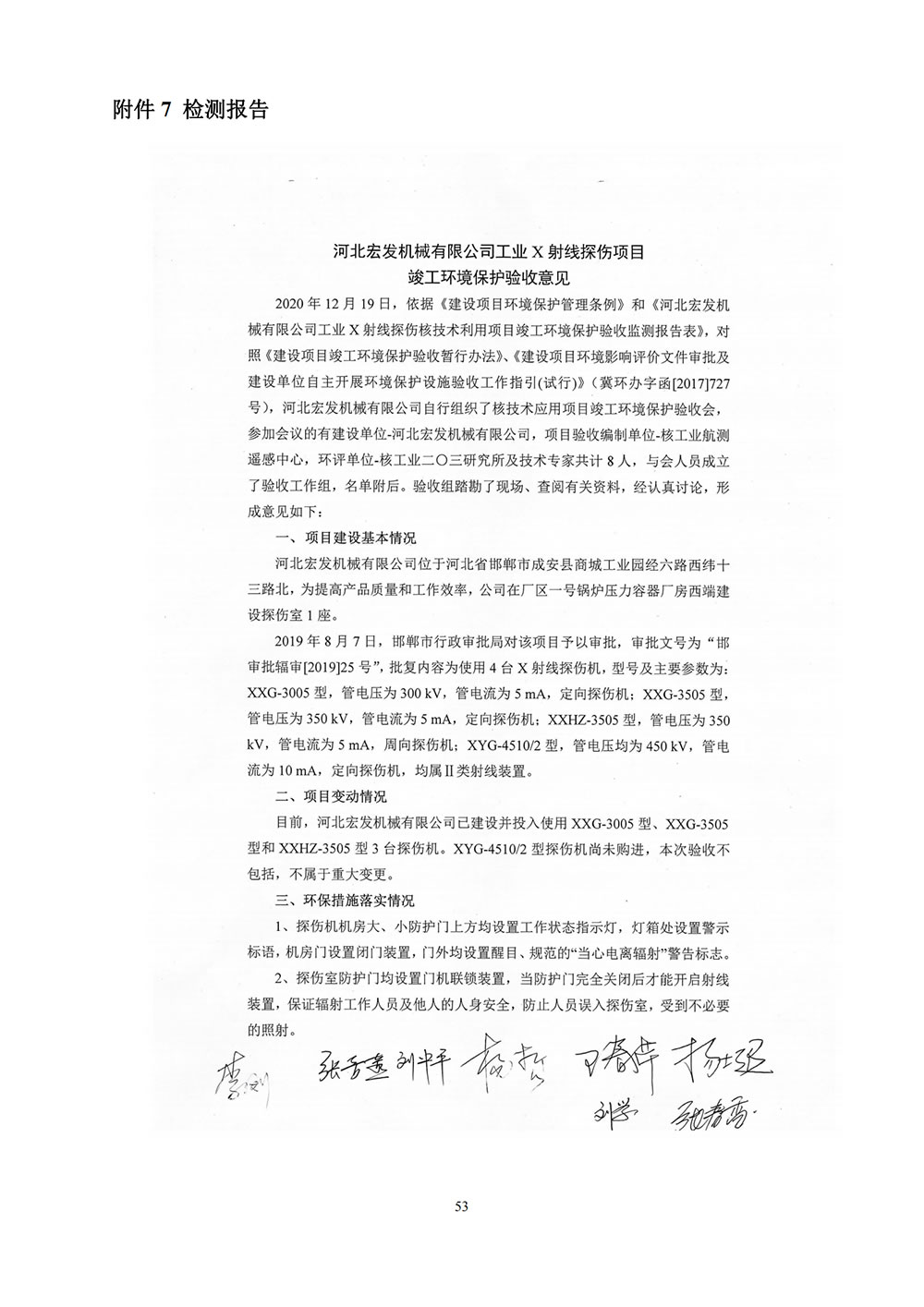 河北宏发机械工业X射线探伤核技术利用项����� �������Ƴ������������ �������Ƴ������������ �������Ƴ������������ �������Ƴ�������目竣工验收监测表